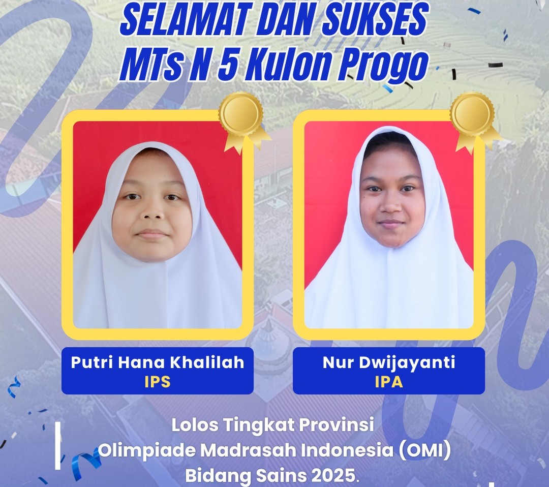 Keberhasilan Putri dan Nur menembus tingkat provinsi OMI 2025 ini menunjukkan kualitas pendidikan yang unggul di MTsN 5 Kulon Progo, khususnya di bidang Sains dan penguasaan teknologi. Pihak madrasah berharap capaian ini dapat menjadi inspirasi bagi seluruh siswa untuk terus mengukir prestasi, sekaligus menegaskan komitmen madrasah dalam mendukung pengembangan potensi akademik dan non-akademik siswa di kancah daerah hingga nasional. (jkp)