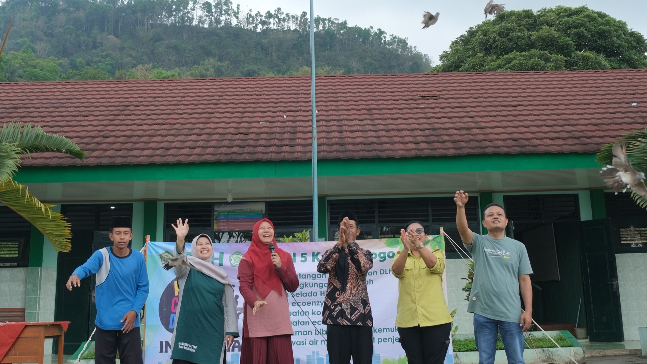 Kulon Progo (MTsN5KP) – Madrasah Tsanawiyah Negeri (MTsN) 5 Kulon Progo menggelar kegiatan peduli lingkungan dengan melepaskan burung perkutut di lapangan madrasah pada Jumat pagi (03/10/2025). Aksi konservasi ini merupakan bagian dari upaya madrasah dalam menanamkan kesadaran lingkungan dan ekosistem kepada para siswa. Pelepasan burung dilakukan secara simbolis oleh Kepala MTsN 5 Kulon Progo, Farida Rahmawati, S.Pd., M.Pd., bersama Rafka Adi Setiawan selaku Ketua OSIS, dan perwakilan dari Dinas Lingkungan Hidup (DLH) Kulon Progo, Fita Maharani, SH, M.HUm., Kepala Bidang Tata Lingkungan Hidup beserta jajarannya.