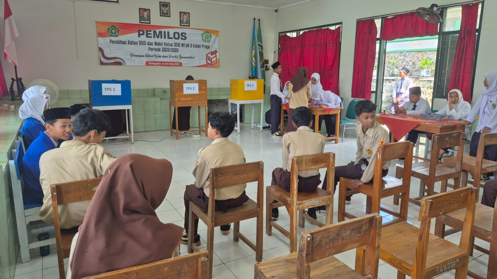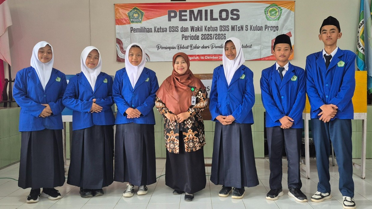 Kulon Progo (MTsN5KP) — MTsN 5 Kulon Progo melaksanakan kegiatan Pemilihan Ketua dan Wakil Ketua OSIS (Pemilos) secara daring yang digelar serentak di seluruh madrasah se-Kabupaten Kulon Progo pada Kamis (16/10/2025) pagi. Kegiatan ini merupakan bagian dari program inovatif Dinas Kominfo Kabupaten Kulon Progo dalam mendukung transformasi digital di lingkungan pendidikan.