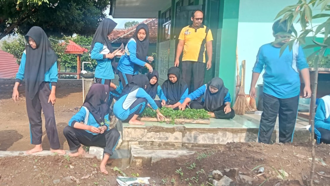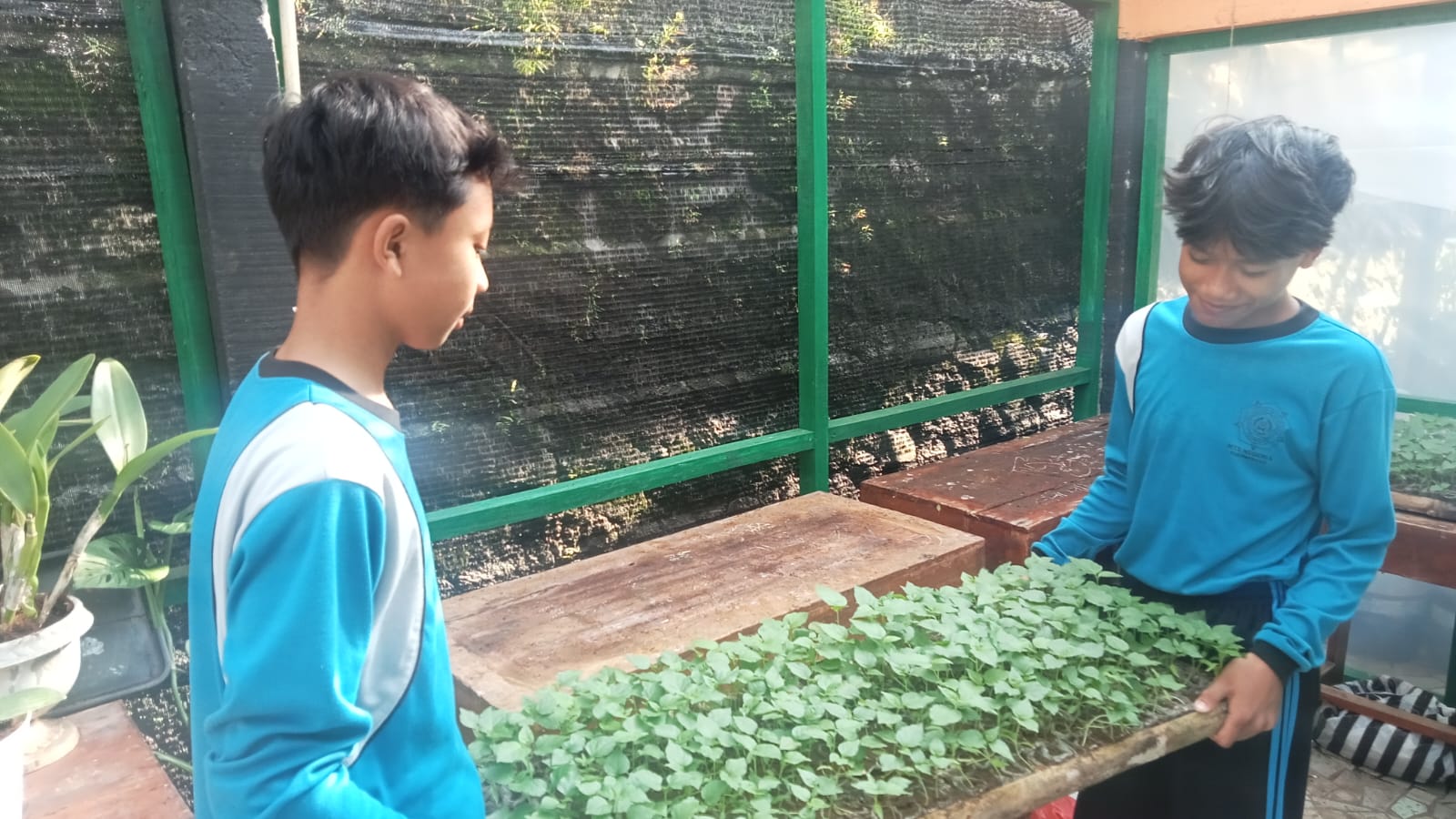 Siswa MTsN 5 Kulon Progo Pindahkan Benih Unggul dari Green House ke Lahan Terbuka