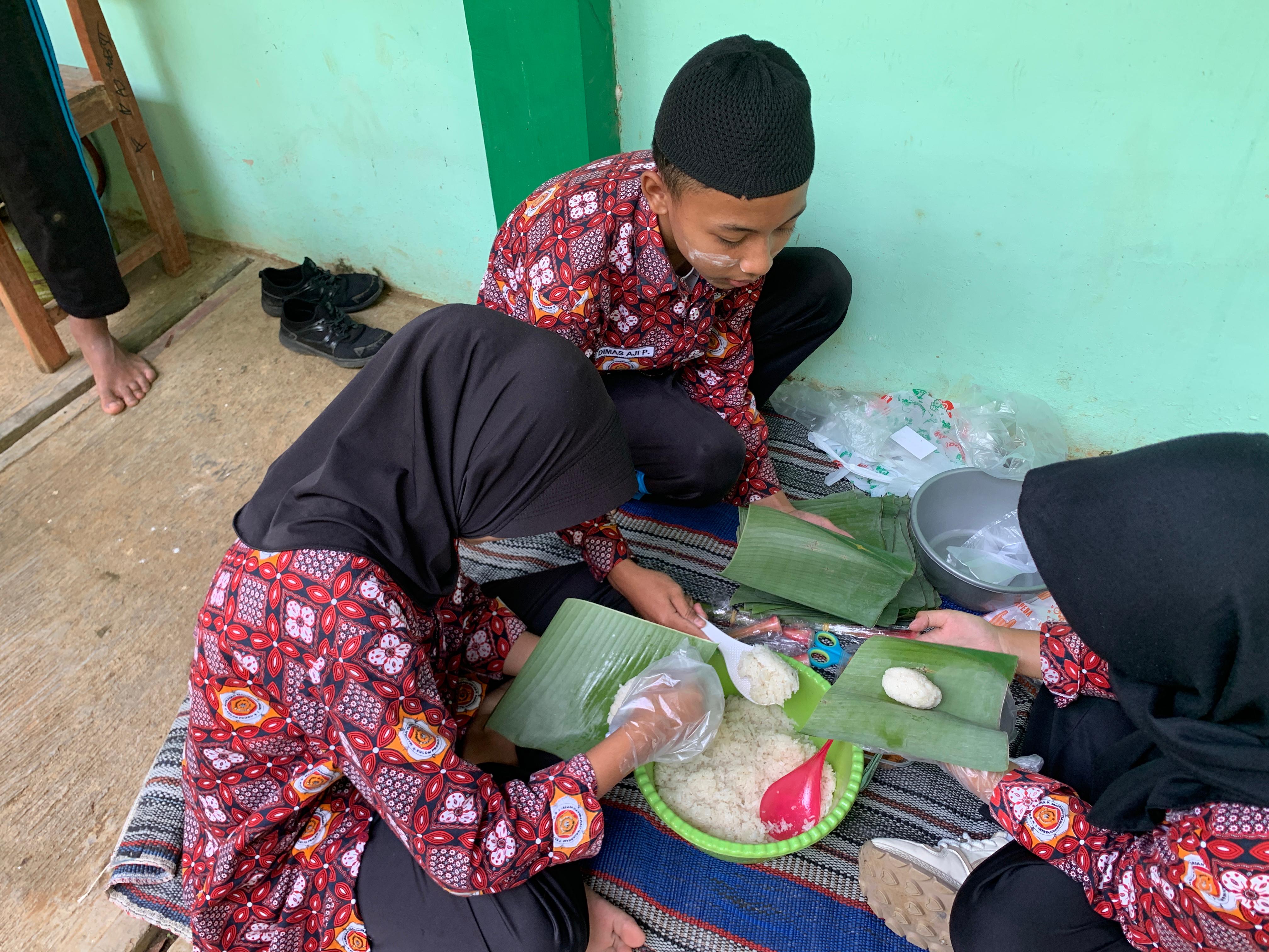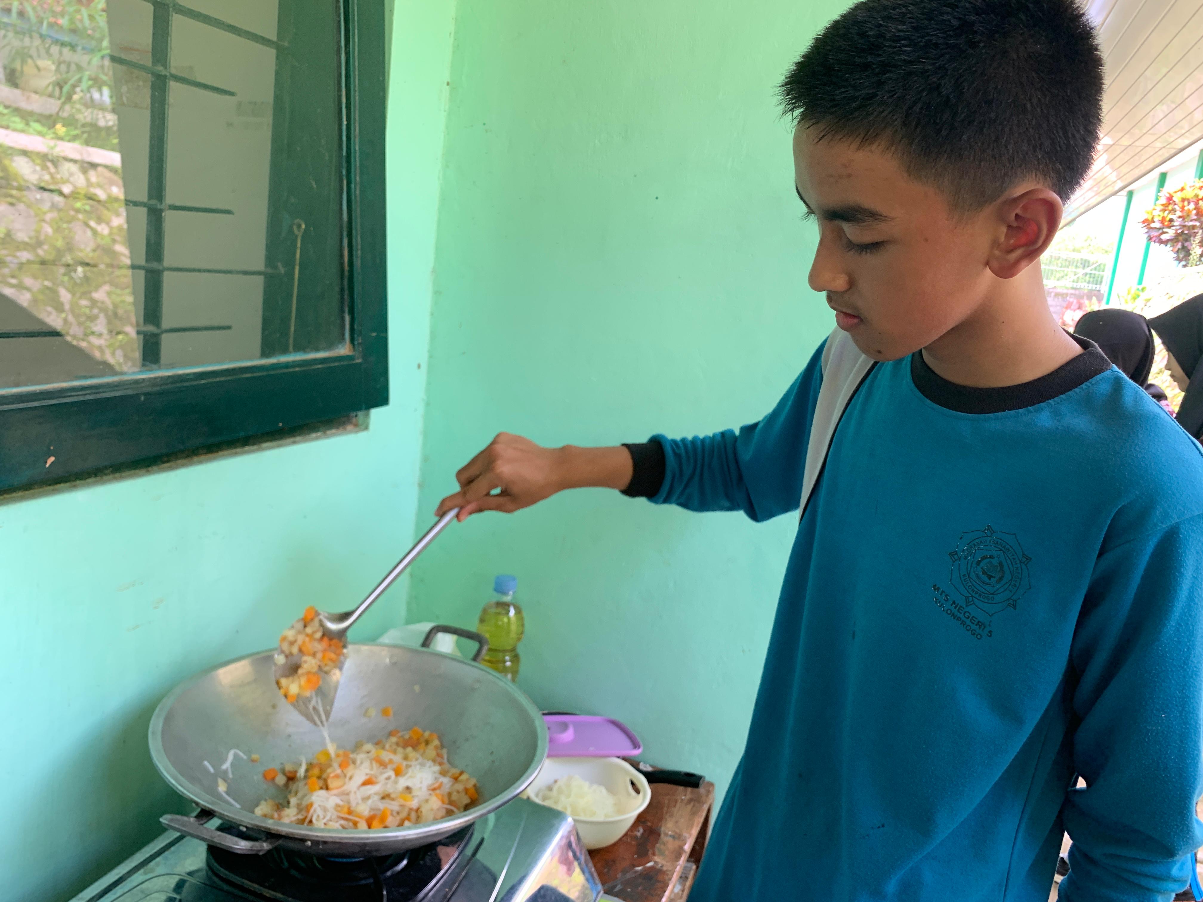 Proses memasak berlangsung penuh semangat. Para siswa tampak menikmati setiap tahap, mulai dari menakar bahan, membaca resep, hingga membagi tugas agar proses berjalan lancar. Beberapa kelompok tampak sangat teliti saat membungkus lemper, mencetak putu ayu, maupun membentuk cenil dengan rapi. Semangat kebersamaan dan kreativitas terlihat jelas selama kegiatan berlangsung.