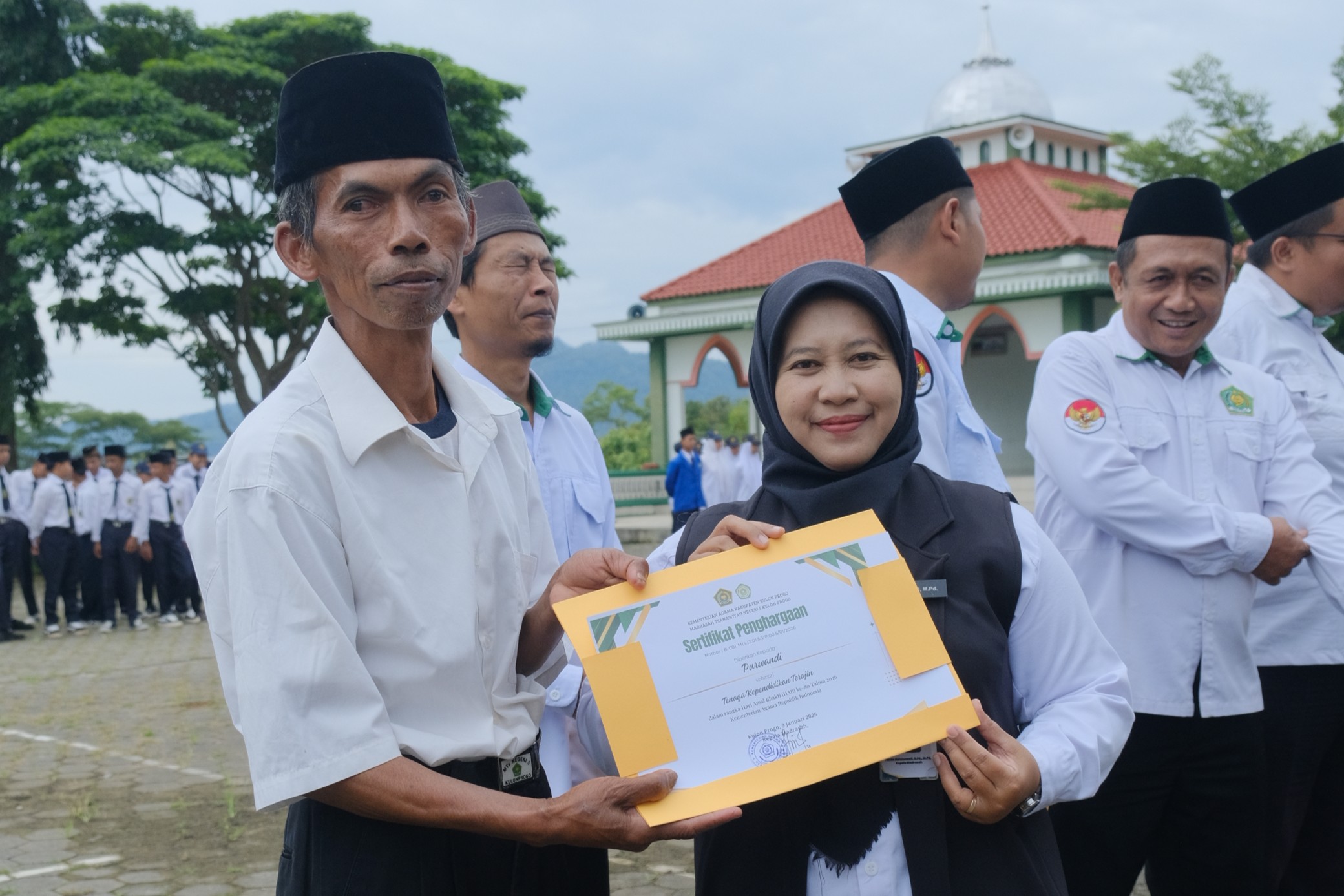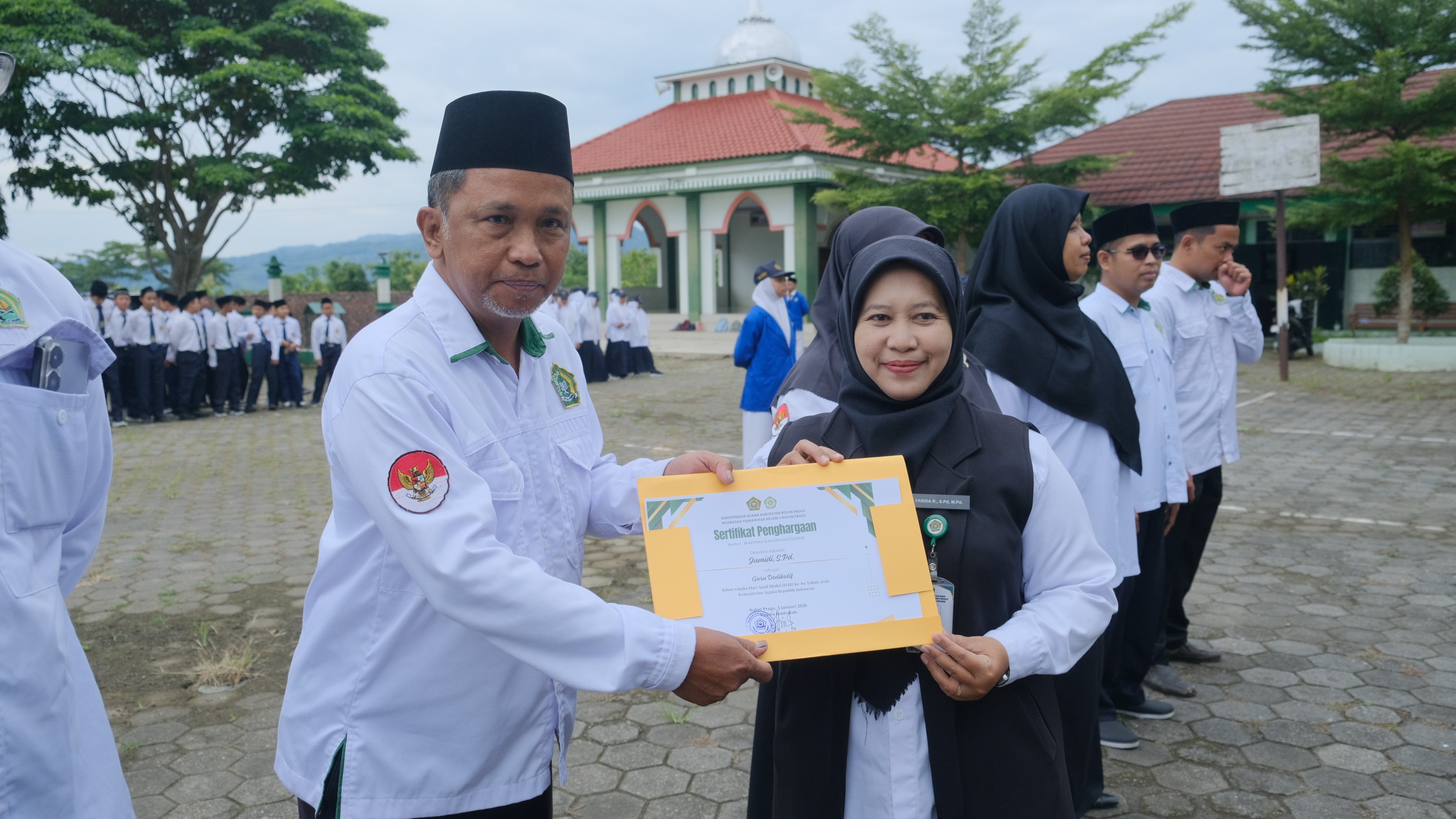 Penyerahan sertifikat penghargaan ini dilakukan langsung oleh Kepala MTsN 5 Kulon Progo di hadapan seluruh peserta upacara. Penghargaan ini merupakan bentuk rekognisi atas dedikasi, inovasi, dan kerja keras para pendidik serta staf dalam memajukan kualitas pendidikan di lingkungan madrasah.
