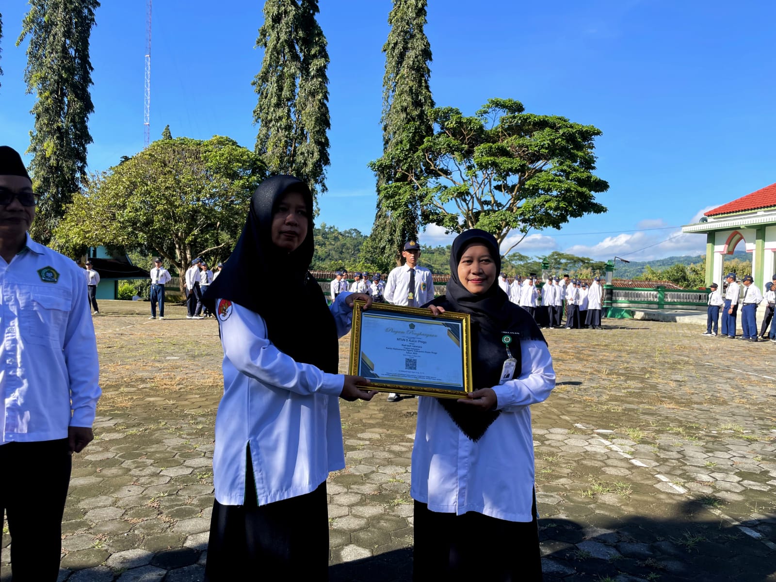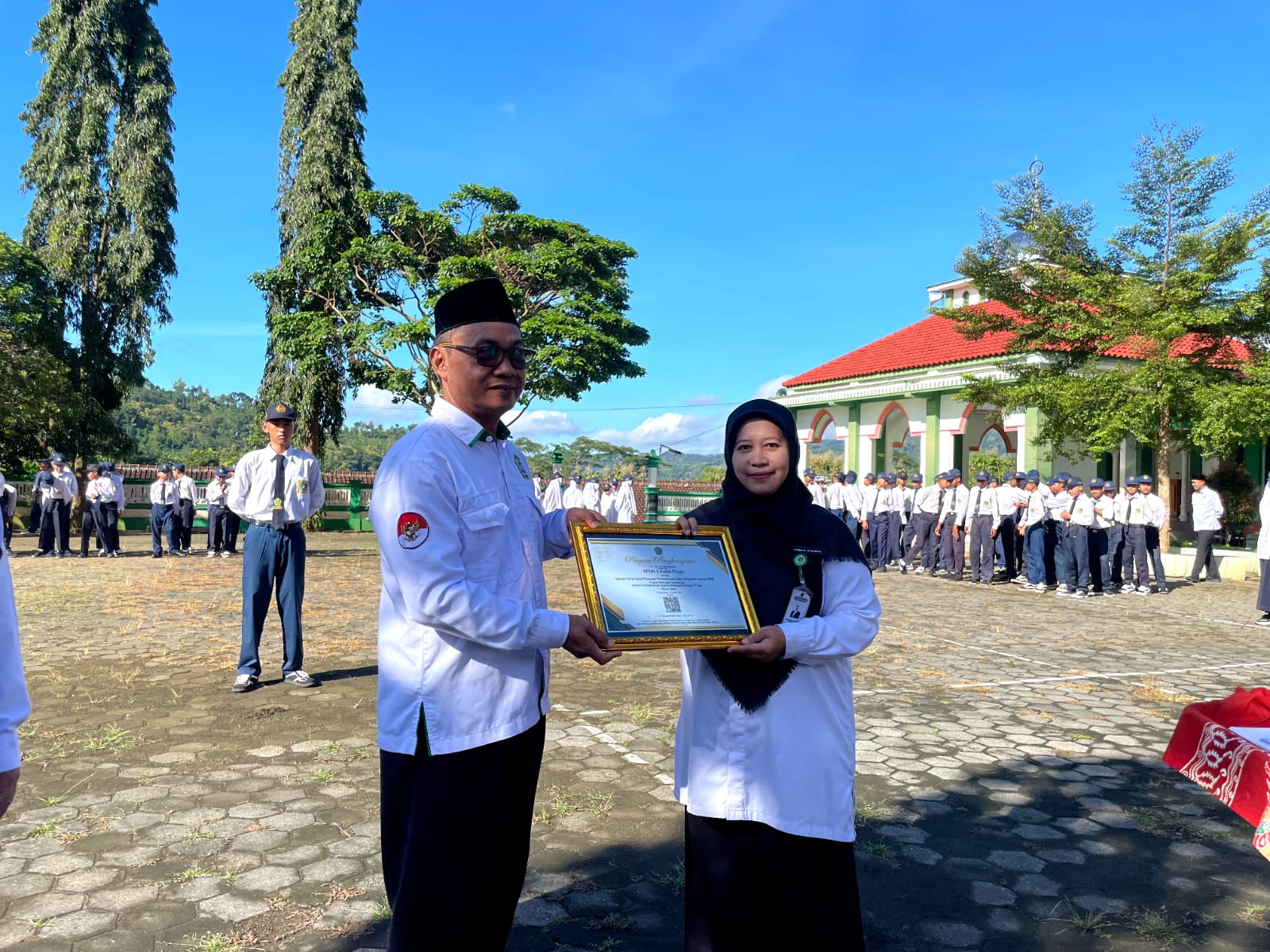 Kulon Progo (MTsN5KP) — Suasana khidmat upacara bendera hari Senin di halaman MTsN 5 Kulon Progo terasa istimewa dengan dilaksanakannya penyerahan penghargaan Adiwiyata dan Zona Integritas kepada kepala madrasah, Farida Rahmawati, S.Pd., M.Pd.