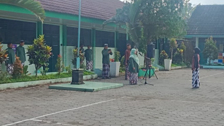 Kulon Progo (MTsN5KP) – Lapangan MTsN 5 Kulon Progo menjadi saksi sebuah khidmat pagi yang sarat makna pada Rabu (15/10/2025). Berbeda dengan upacara bendera biasa, madrasah ini menggelar upacara peringatan Hari Jadi Kabupaten Kulon Progo ke-74 dengan nuansa budaya Jawa yang kental. Seluruh rangkaian acara, mulai dari sambutan hingga inti pesan, disampaikan menggunakan Bahasa Jawa, meneguhkan komitmen untuk nguri-uri (melestarikan) budaya lokal di tengah era globalisasi.