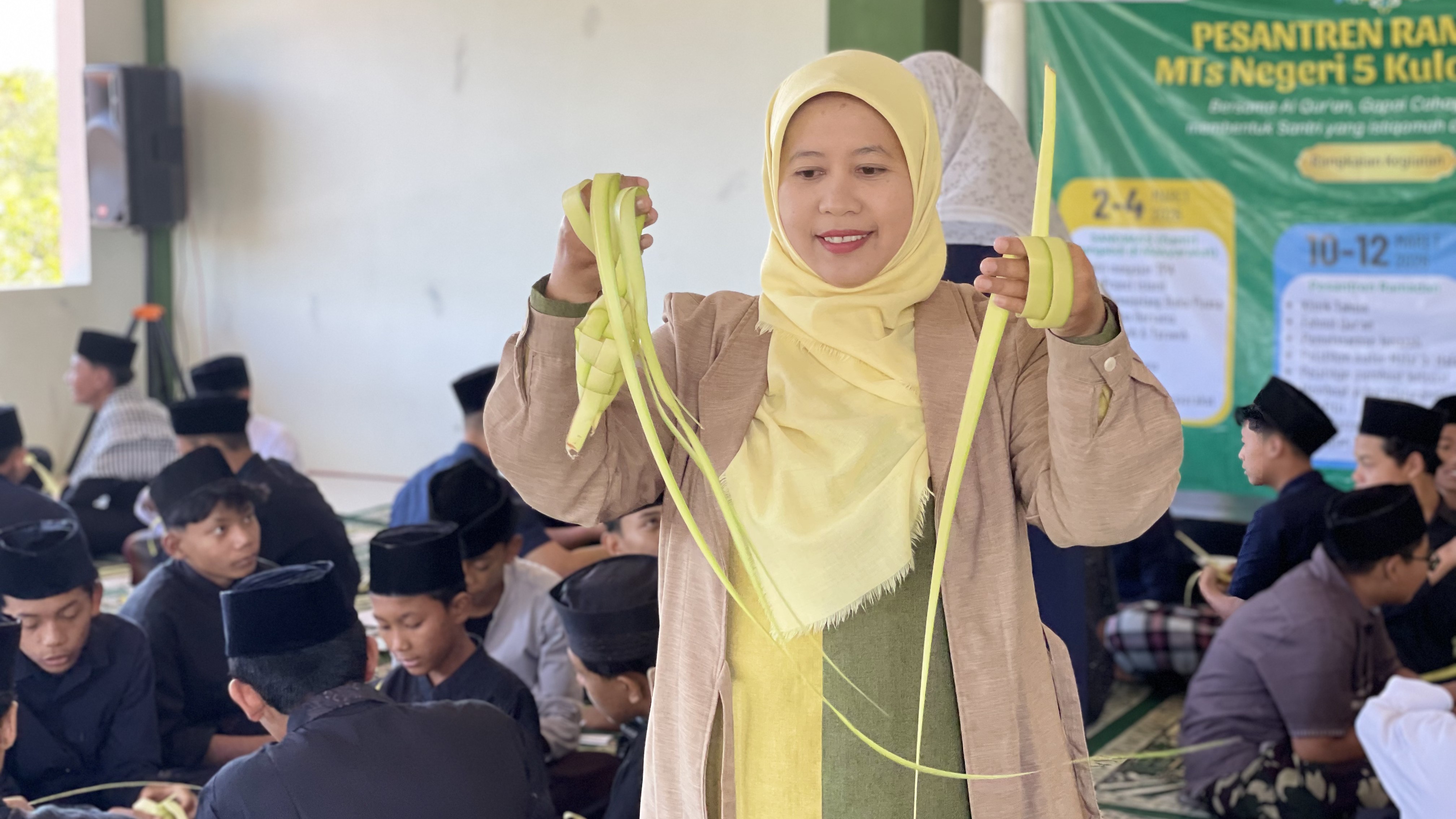 Lestarikan Tradisi Lebaran, Siswa MTsN 5 Kulon Progo Belajar Membuat Ketupat di Masjid Jabal Thoriq