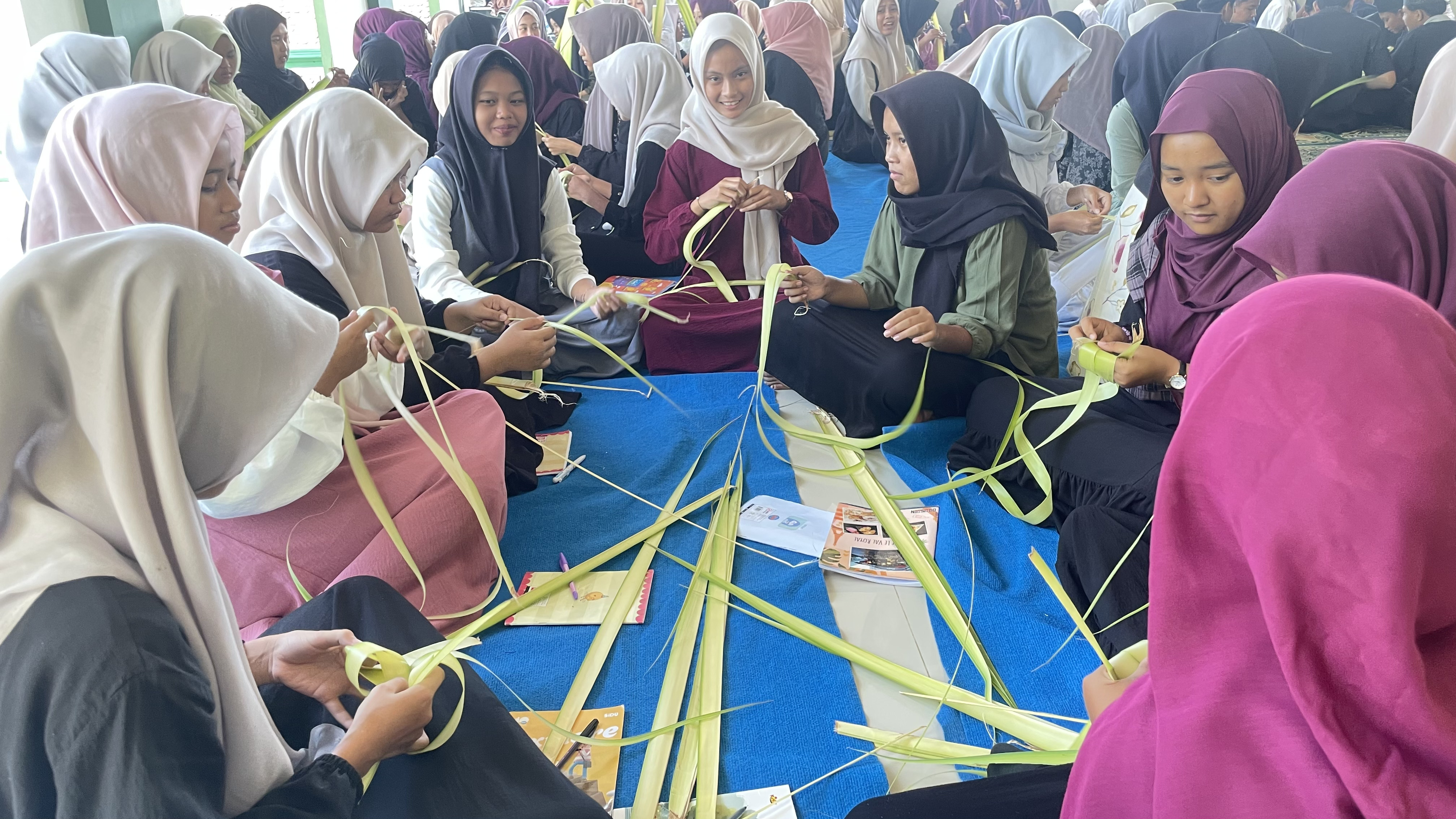 Kegiatan ini bertujuan untuk mengenalkan serta melestarikan tradisi budaya masyarakat Indonesia kepada para siswa. Dalam kegiatan tersebut, para siswa belajar langsung cara membuat anyaman ketupat dari janur hingga membentuk wadah ketupat yang siap diisi beras. Kegiatan ini didampingi oleh Jumidi, S.Pd dan Erna Suswidariyati, S.E. yang memberikan arahan serta membimbing siswa langkah demi langkah dalam membuat anyaman ketupat. Para siswa tampak antusias mengikuti kegiatan tersebut dan saling membantu saat mempraktikkan proses menganyam janur.