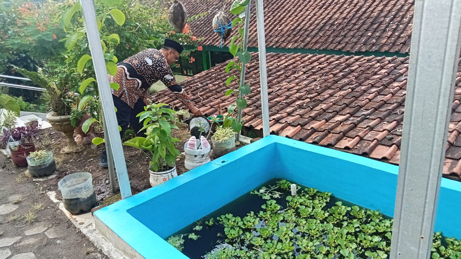 Aksi Hijau di Pagi Hari: Perawatan Rutin Ekosistem Kolam oleh Tim Adiwiyata MTsN 5 Kulon Progo